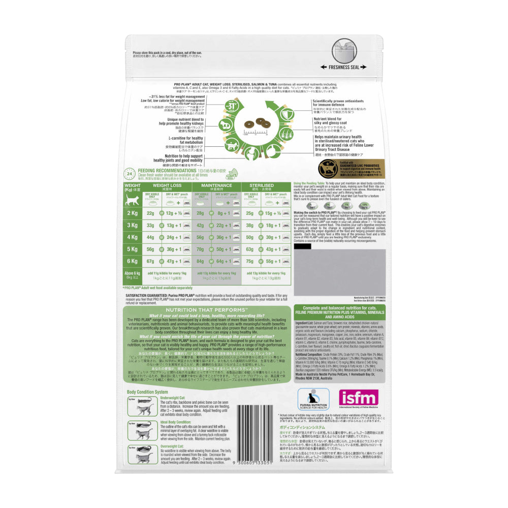 [{"id":42834699747510,"title":"1.5kg","option1":"1.5kg","option2":null,"option3":null,"sku":"12433177","requires_shipping":true,"taxable":true,"featured_image":{"id":39042965897398,"product_id":7819073421494,"position":1,"created_at":"2025-10-13T11:42:59+10:00","updated_at":"2025-10-13T11:43:01+10:00","alt":null,"width":2400,"height":2400,"src":"\/\/yourpetpa.com.au\/cdn\/shop\/files\/NEST_9300605133013-0.jpg?v=1760319781","variant_ids":[42834699747510]},"available":false,"name":"Pro Plan Weight Loss Sterilised Salmon \u0026 Tuna Dry Cat Food - 1.5kg","public_title":"1.5kg","options":["1.5kg"],"price":3495,"weight":1500,"compare_at_price":4195,"inventory_management":"shopify","barcode":"9300605133013","featured_media":{"alt":null,"id":30655055134902,"position":1,"preview_image":{"aspect_ratio":1.0,"height":2400,"width":2400,"src":"\/\/yourpetpa.com.au\/cdn\/shop\/files\/NEST_9300605133013-0.jpg?v=1760319781"}},"requires_selling_plan":false,"selling_plan_allocations":[{"price_adjustments":[{"position":1,"price":3320}],"price":3320,"compare_at_price":3495,"per_delivery_price":3320,"selling_plan_id":4038918326,"selling_plan_group_id":"f3baea5d3e8e9cccd14c397bf1beb4e9e941dc84"},{"price_adjustments":[{"position":1,"price":3320}],"price":3320,"compare_at_price":3495,"per_delivery_price":3320,"selling_plan_id":4020404406,"selling_plan_group_id":"f3baea5d3e8e9cccd14c397bf1beb4e9e941dc84"},{"price_adjustments":[{"position":1,"price":3320}],"price":3320,"compare_at_price":3495,"per_delivery_price":3320,"selling_plan_id":4034298038,"selling_plan_group_id":"f3baea5d3e8e9cccd14c397bf1beb4e9e941dc84"},{"price_adjustments":[{"position":1,"price":3320}],"price":3320,"compare_at_price":3495,"per_delivery_price":3320,"selling_plan_id":4034330806,"selling_plan_group_id":"f3baea5d3e8e9cccd14c397bf1beb4e9e941dc84"},{"price_adjustments":[{"position":1,"price":3320}],"price":3320,"compare_at_price":3495,"per_delivery_price":3320,"selling_plan_id":4034363574,"selling_plan_group_id":"f3baea5d3e8e9cccd14c397bf1beb4e9e941dc84"},{"price_adjustments":[{"position":1,"price":3320}],"price":3320,"compare_at_price":3495,"per_delivery_price":3320,"selling_plan_id":4034396342,"selling_plan_group_id":"f3baea5d3e8e9cccd14c397bf1beb4e9e941dc84"},{"price_adjustments":[{"position":1,"price":3320}],"price":3320,"compare_at_price":3495,"per_delivery_price":3320,"selling_plan_id":4038820022,"selling_plan_group_id":"f3baea5d3e8e9cccd14c397bf1beb4e9e941dc84"},{"price_adjustments":[{"position":1,"price":3320}],"price":3320,"compare_at_price":3495,"per_delivery_price":3320,"selling_plan_id":4038852790,"selling_plan_group_id":"f3baea5d3e8e9cccd14c397bf1beb4e9e941dc84"},{"price_adjustments":[{"position":1,"price":3320}],"price":3320,"compare_at_price":3495,"per_delivery_price":3320,"selling_plan_id":4038983862,"selling_plan_group_id":"6c819509c8de19993a9ff16dd38b8fb2fa1a7ee2"},{"price_adjustments":[{"position":1,"price":3320}],"price":3320,"compare_at_price":3495,"per_delivery_price":3320,"selling_plan_id":4039016630,"selling_plan_group_id":"6c819509c8de19993a9ff16dd38b8fb2fa1a7ee2"},{"price_adjustments":[{"position":1,"price":3320}],"price":3320,"compare_at_price":3495,"per_delivery_price":3320,"selling_plan_id":4039049398,"selling_plan_group_id":"6c819509c8de19993a9ff16dd38b8fb2fa1a7ee2"},{"price_adjustments":[{"position":1,"price":3320}],"price":3320,"compare_at_price":3495,"per_delivery_price":3320,"selling_plan_id":4039082166,"selling_plan_group_id":"6c819509c8de19993a9ff16dd38b8fb2fa1a7ee2"},{"price_adjustments":[{"position":1,"price":3320}],"price":3320,"compare_at_price":3495,"per_delivery_price":3320,"selling_plan_id":4039114934,"selling_plan_group_id":"6c819509c8de19993a9ff16dd38b8fb2fa1a7ee2"},{"price_adjustments":[{"position":1,"price":3320}],"price":3320,"compare_at_price":3495,"per_delivery_price":3320,"selling_plan_id":4039147702,"selling_plan_group_id":"6c819509c8de19993a9ff16dd38b8fb2fa1a7ee2"},{"price_adjustments":[{"position":1,"price":3320}],"price":3320,"compare_at_price":3495,"per_delivery_price":3320,"selling_plan_id":4039180470,"selling_plan_group_id":"6c819509c8de19993a9ff16dd38b8fb2fa1a7ee2"},{"price_adjustments":[{"position":1,"price":3320}],"price":3320,"compare_at_price":3495,"per_delivery_price":3320,"selling_plan_id":4039213238,"selling_plan_group_id":"6c819509c8de19993a9ff16dd38b8fb2fa1a7ee2"},{"price_adjustments":[{"position":1,"price":3320}],"price":3320,"compare_at_price":3495,"per_delivery_price":3320,"selling_plan_id":4039639222,"selling_plan_group_id":"6c819509c8de19993a9ff16dd38b8fb2fa1a7ee2"},{"price_adjustments":[{"position":1,"price":3320}],"price":3320,"compare_at_price":3495,"per_delivery_price":3320,"selling_plan_id":4039671990,"selling_plan_group_id":"6c819509c8de19993a9ff16dd38b8fb2fa1a7ee2"},{"price_adjustments":[{"position":1,"price":3320}],"price":3320,"compare_at_price":3495,"per_delivery_price":3320,"selling_plan_id":4039704758,"selling_plan_group_id":"6c819509c8de19993a9ff16dd38b8fb2fa1a7ee2"},{"price_adjustments":[{"position":1,"price":3320}],"price":3320,"compare_at_price":3495,"per_delivery_price":3320,"selling_plan_id":4039737526,"selling_plan_group_id":"6c819509c8de19993a9ff16dd38b8fb2fa1a7ee2"},{"price_adjustments":[{"position":1,"price":3320}],"price":3320,"compare_at_price":3495,"per_delivery_price":3320,"selling_plan_id":4039770294,"selling_plan_group_id":"6c819509c8de19993a9ff16dd38b8fb2fa1a7ee2"},{"price_adjustments":[{"position":1,"price":3320}],"price":3320,"compare_at_price":3495,"per_delivery_price":3320,"selling_plan_id":4039803062,"selling_plan_group_id":"6c819509c8de19993a9ff16dd38b8fb2fa1a7ee2"},{"price_adjustments":[{"position":1,"price":3320}],"price":3320,"compare_at_price":3495,"per_delivery_price":3320,"selling_plan_id":4039835830,"selling_plan_group_id":"6c819509c8de19993a9ff16dd38b8fb2fa1a7ee2"},{"price_adjustments":[{"position":1,"price":3320}],"price":3320,"compare_at_price":3495,"per_delivery_price":3320,"selling_plan_id":4039868598,"selling_plan_group_id