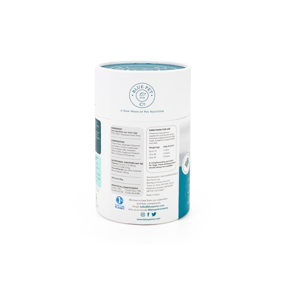 Natural skin & coat health supplement for dogs. A tasty chewable super-powered with PhyCoidan™ and PhytoMara™, our unique seaweed complexes for dogs to support a healthy, shiny coat.