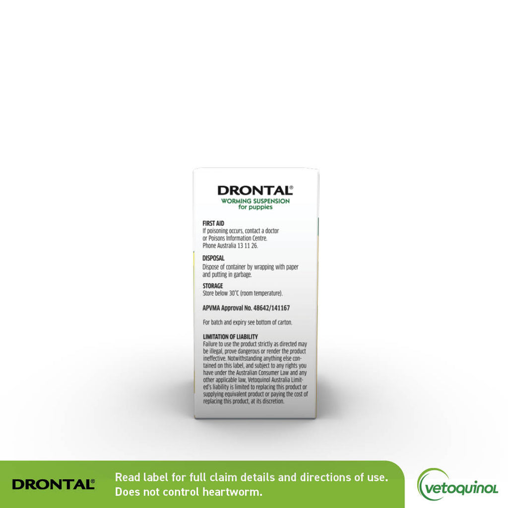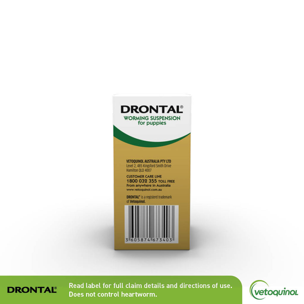 When your puppy is old enough, combine your puppy Drontal ® Worming Suspension with flea and tick and heartworm prevention to control all parasites in your pet. Drontal® Worming Suspension does not control tapeworms or heartworm.
