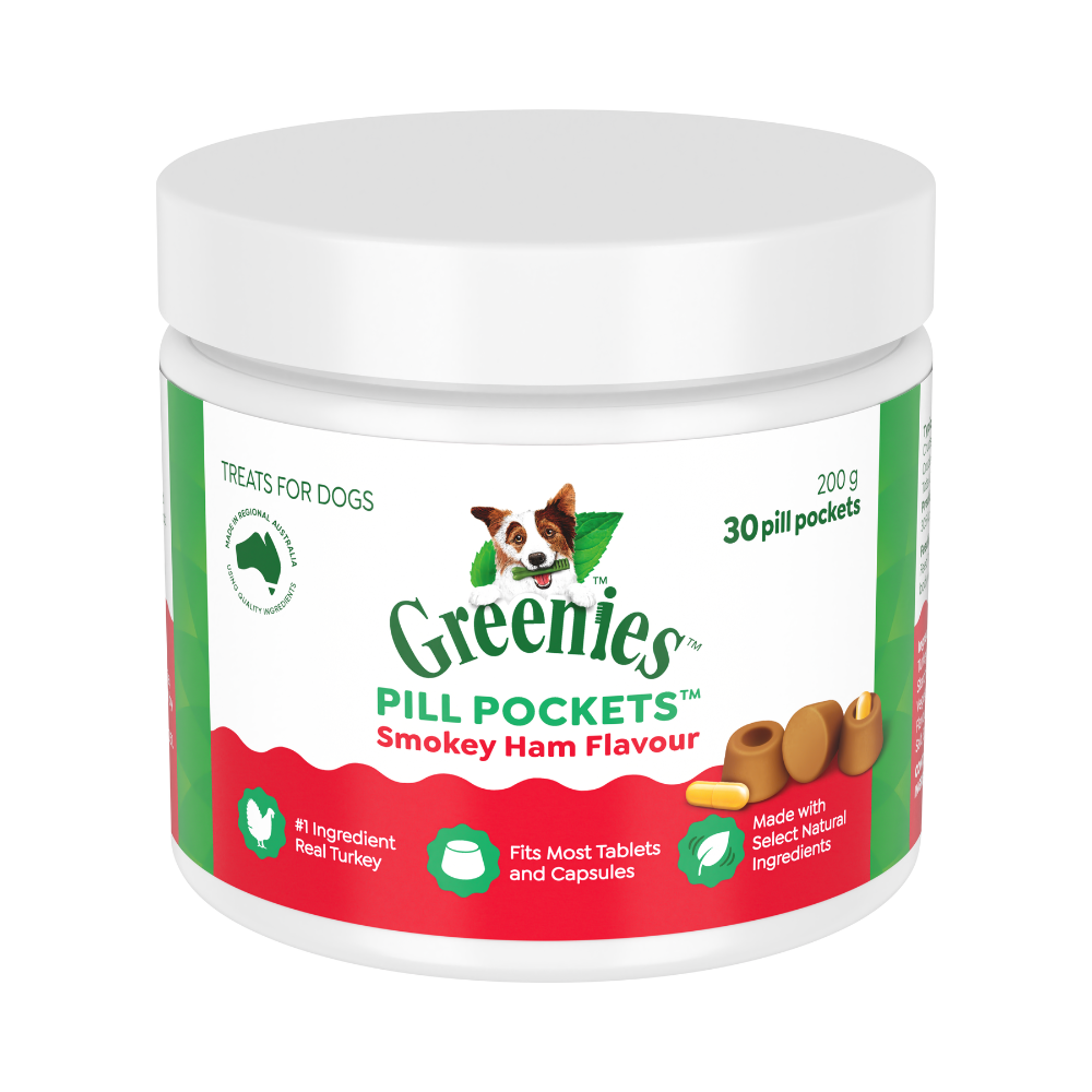 Greenies™ Pill Pockets Smokey Ham Dog Treats make giving medication simple and stress-free. These soft treats feature a built-in pouch, allowing you to easily hide tablets or capsules while masking their taste and smell.