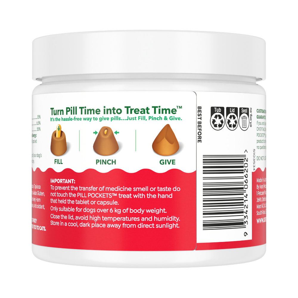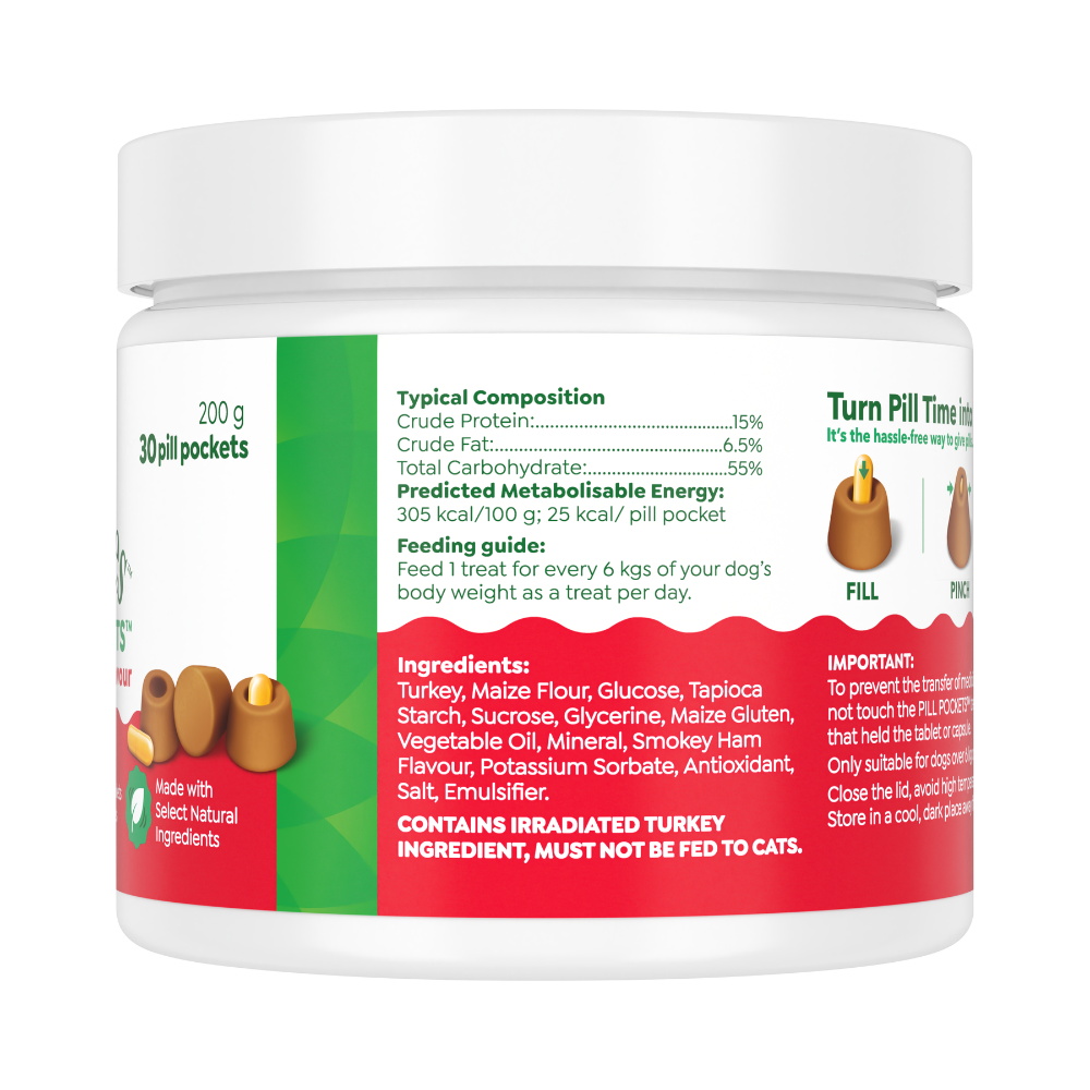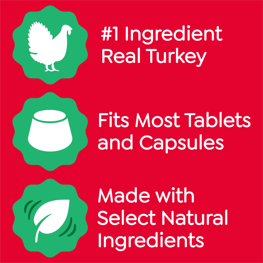 With a rich smokey ham flavour and real turkey as the main ingredient, they’re designed to be both effective and appealing to dogs. The soft, pliable texture makes it easy to seal around pills of different shapes and sizes, helping ensure your dog takes their medication without fuss.
