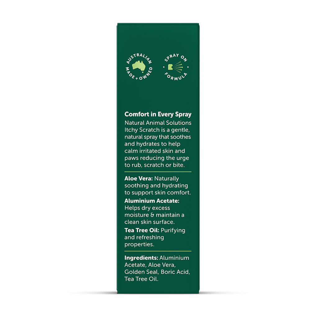 Soothe your pet's itching and discomfort with Natural Animal Solutions ItchyScratch Spray. This natural, easy-to-use solution provides immediate relief for your beloved furry friend, helping to nourish and calm their skin.