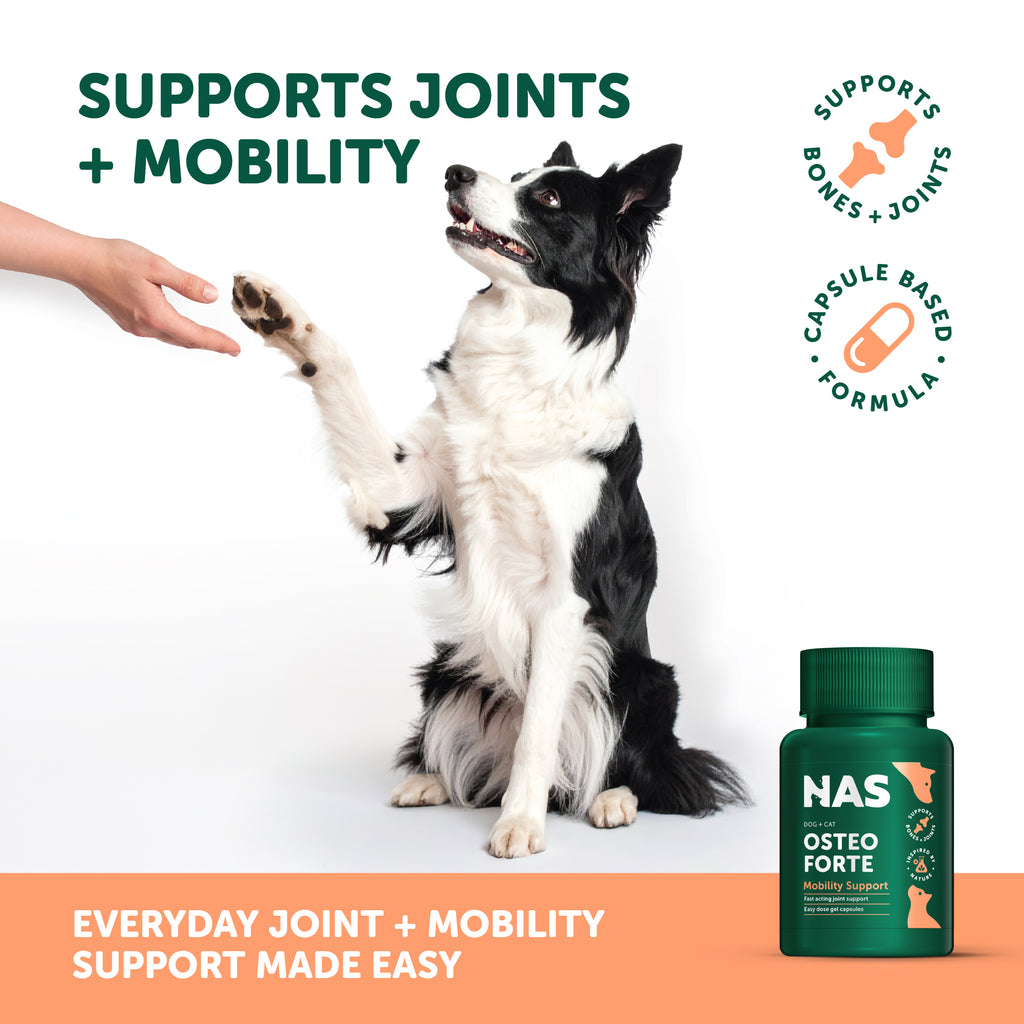 OsteoForte is an all-natural supplement, free from fillers and artificial ingredients delivering the necessary nutrients to maintain the health of your pet’s joints, delaying those ‘slowing down’ years.