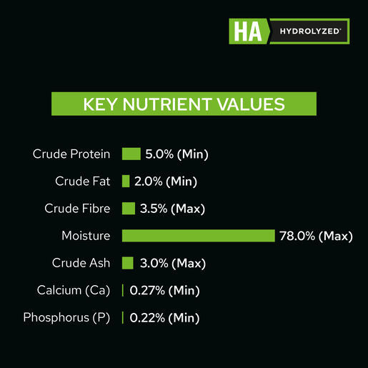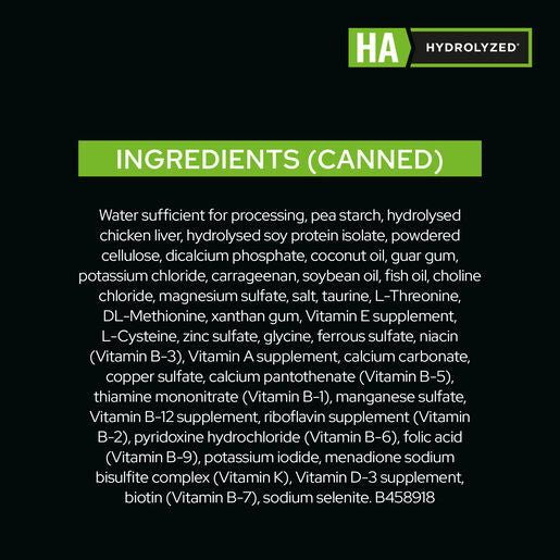 The PRO PLAN® Veterinary Diets HA Hydrolyzed Canine Formula contains hydrolysed proteins which are less likely to induce an allergic response, and the low-allergen carbohydrates help minimise the risk of an allergic reaction. HA is formulated to be highly digestible and provide optimal nutrition.