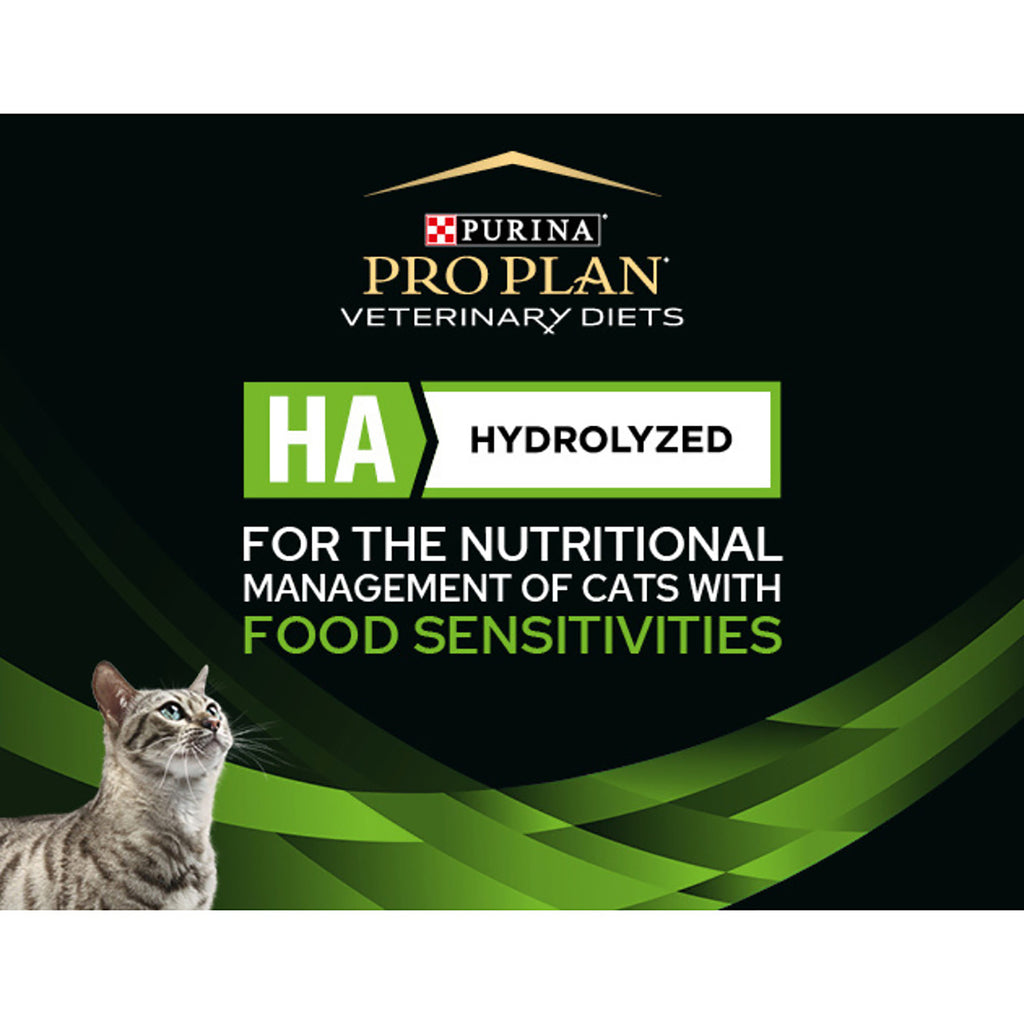 Food sensitivity generally appears as gastrointestinal upset or intense itching or scratching. The Pro Plan Veterinary Diets HA Hydrolyzed Feline Formula contains hydrolysed proteins which are less likely to induce an allergic response, and the low-allergen carbohydrates help minimise the risk of an allergic reaction. HA is formulated to be highly digestible and provide optimal nutrition.