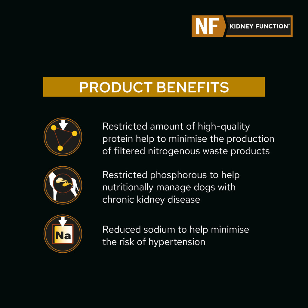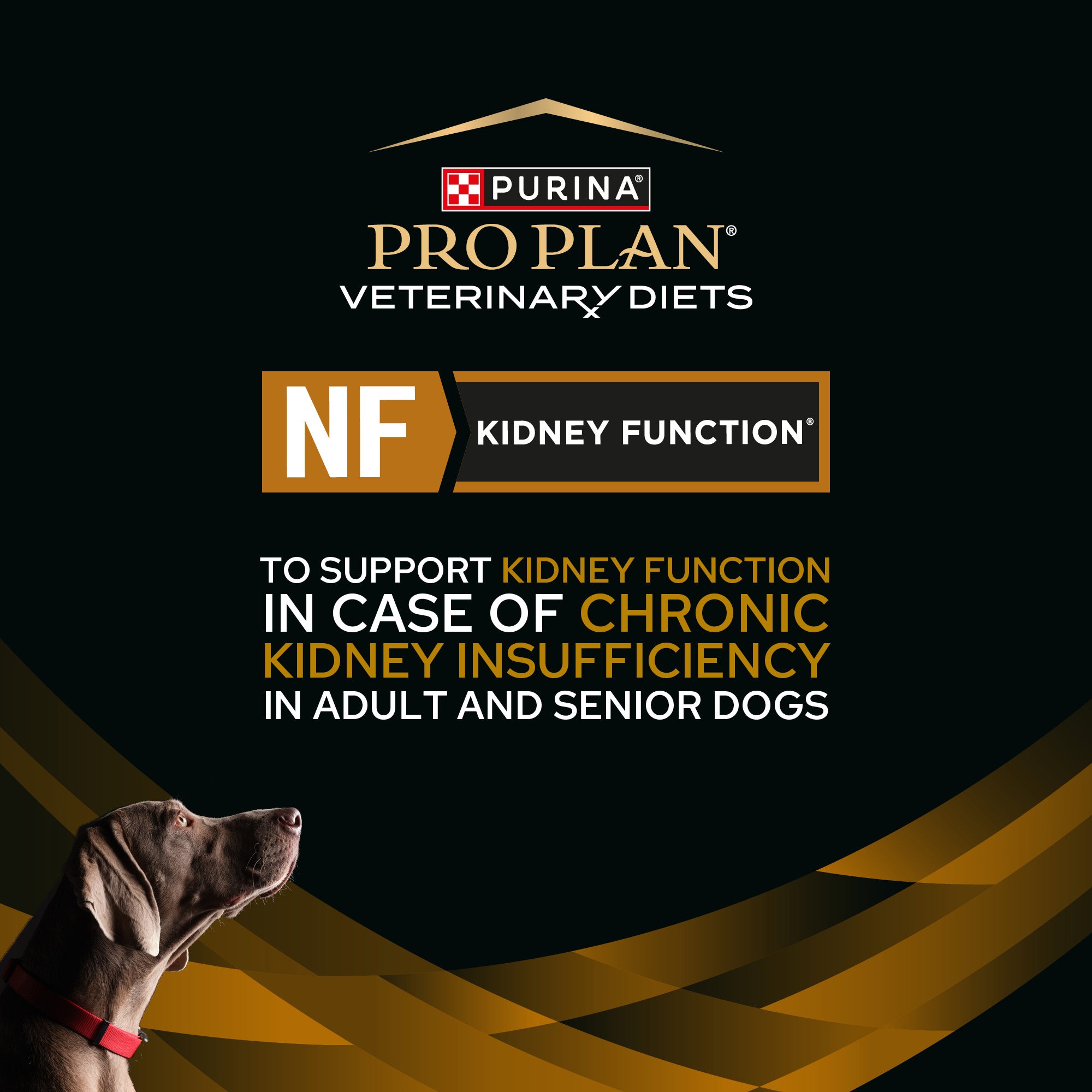 Kidney disease is usually a progressive disorder that can’t be cured, but medical treatment and dietary management may help make your dog more comfortable. Pro Plan Veterinary Diets NF Kidney Function Canine Formula was developed to help minimise the signs of kidney failure and help slow the progression of the disease.