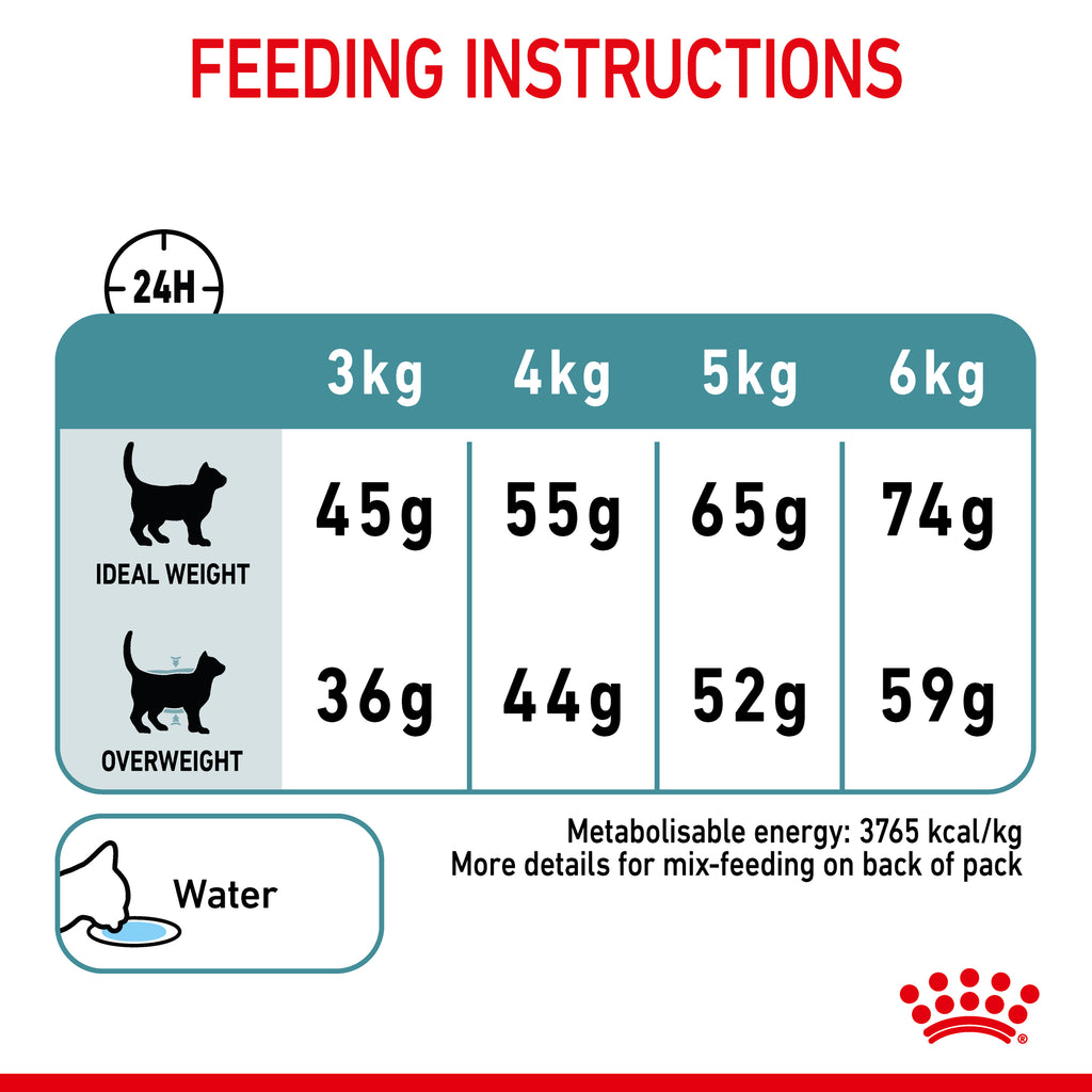 The exclusive use of ROYAL CANIN® HAIRBALL CARE dry formula is proven to reduce hairball formation in 14 days.* The specially formulated HAIRBALL CARE complex is composed of a specific blend of natural dietary fibres, including psyllium, to help naturally stimulate intestinal transit. As a consequence, hair swallowed daily can be eliminated in the stools, rather than building up in the stomach and being regurgitated.