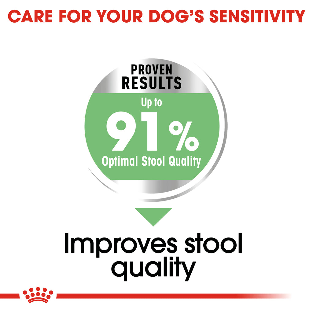 Our Digestive Care nutritional program has two components available: crunchy kibble and a delicious pâté in a pouch, both are nutritionally complete and perfectly complement each other. Don’t just take our word for it, ROYAL CANIN® Digestive Care Medium’s results boast up to 91% optimal stool quality development.