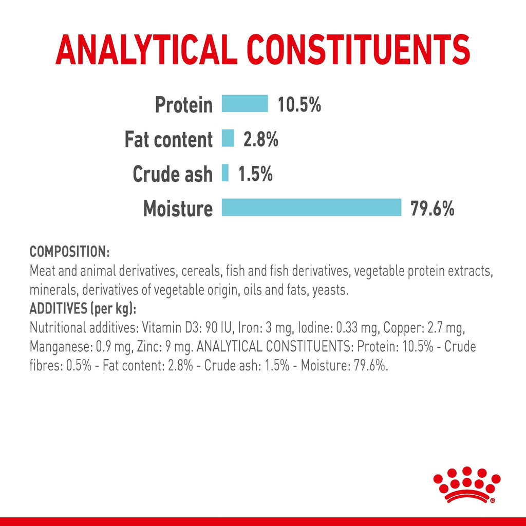 Composition Meat and animal derivatives, cereals, fish and fish derivatives, vegetable protein extracts, minerals, derivatives of vegetable origin, oils and fats, yeasts. Additives (per kg): Nutritional additives: Vitamin D3: 90 IU, Iron: 3 mg, Iodine:0.33 mg, Copper: 2.7 mg, Manganese: 0.9 mg, Zinc: 9 mg