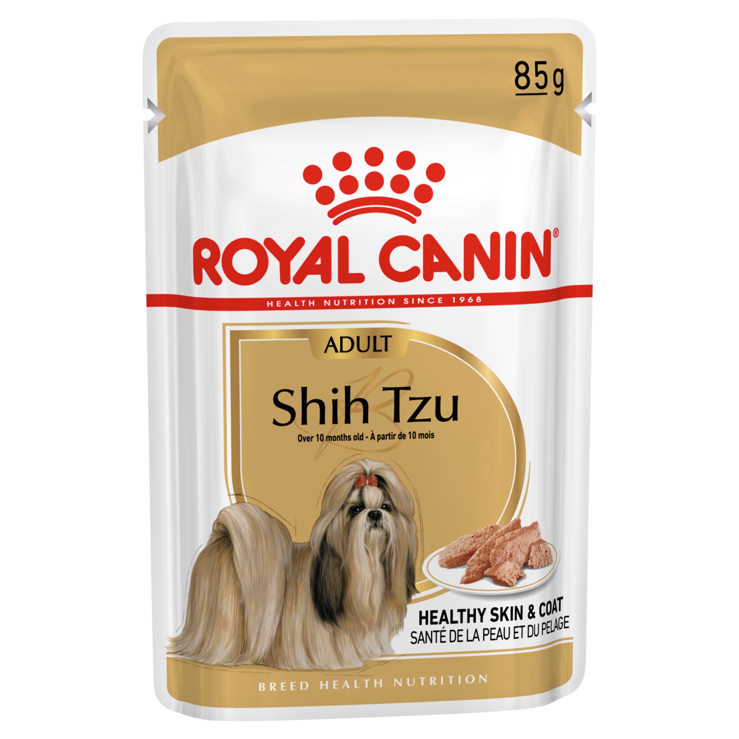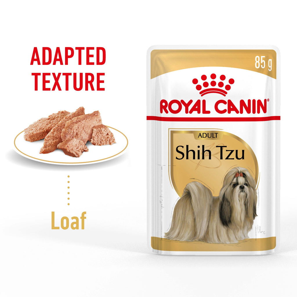 Royal Canin® Shih Tzu Adult Loaf is enriched with proteins and fatty acids from quality sources. These beneficial nutrients help to nourish your Shih Tzu’s coat and support skin health. Royal Canin® Shih Tzu Adult Loaf also helps to support healthy cardiac function. This diet has a smooth pâté texture, as well as a rich and appetising aroma to appeal to your dog’s appetite.