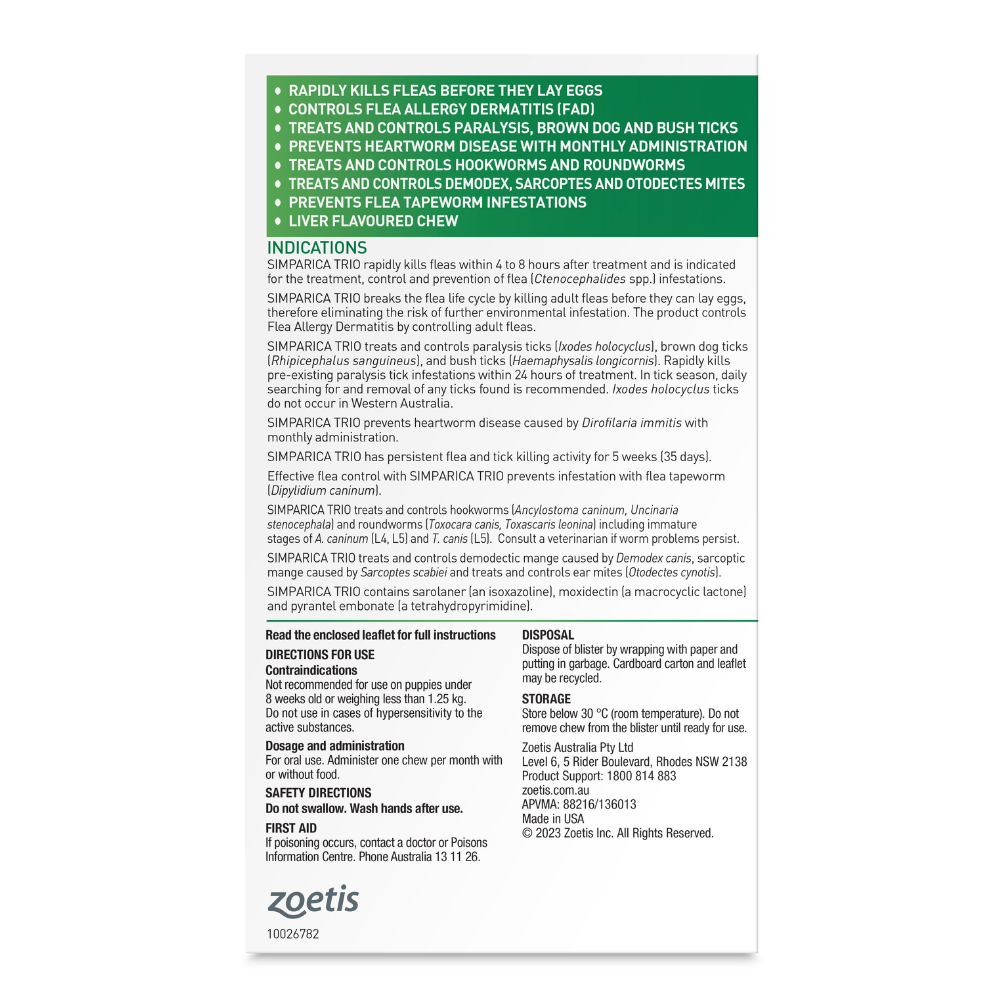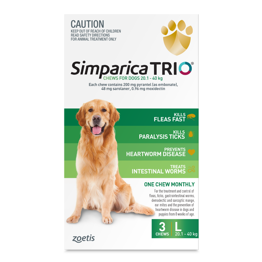 [{"id":41944440570038,"title":"3 Pack","option1":"3 Pack","option2":null,"option3":null,"sku":"10022142","requires_shipping":true,"taxable":true,"featured_image":{"id":40663781048502,"product_id":7507784958134,"position":1,"created_at":"2026-02-05T10:50:57+10:00","updated_at":"2026-02-05T10:50:59+10:00","alt":null,"width":1000,"height":1000,"src":"\/\/yourpetpa.com.au\/cdn\/shop\/files\/1_cd04e761-b636-47fc-8151-5ddb5c583db9.png?v=1770252659","variant_ids":[41944440570038]},"available":true,"name":"Simparica TRIO For Dogs 20.1 - 40kg Green Large - 3 Pack","public_title":"3 Pack","options":["3 Pack"],"price":5520,"weight":50,"compare_at_price":7003,"inventory_management":"shopify","barcode":"5414736046914","featured_media":{"alt":null,"id":32133925634230,"position":1,"preview_image":{"aspect_ratio":1.0,"height":1000,"width":1000,"src":"\/\/yourpetpa.com.au\/cdn\/shop\/files\/1_cd04e761-b636-47fc-8151-5ddb5c583db9.png?v=1770252659"}},"requires_selling_plan":false,"selling_plan_allocations":[{"price_adjustments":[{"position":1,"price":5244}],"price":5244,"compare_at_price":5520,"per_delivery_price":5244,"selling_plan_id":4038918326,"selling_plan_group_id":"f3baea5d3e8e9cccd14c397bf1beb4e9e941dc84"},{"price_adjustments":[{"position":1,"price":5244}],"price":5244,"compare_at_price":5520,"per_delivery_price":5244,"selling_plan_id":4020404406,"selling_plan_group_id":"f3baea5d3e8e9cccd14c397bf1beb4e9e941dc84"},{"price_adjustments":[{"position":1,"price":5244}],"price":5244,"compare_at_price":5520,"per_delivery_price":5244,"selling_plan_id":4034298038,"selling_plan_group_id":"f3baea5d3e8e9cccd14c397bf1beb4e9e941dc84"},{"price_adjustments":[{"position":1,"price":5244}],"price":5244,"compare_at_price":5520,"per_delivery_price":5244,"selling_plan_id":4034330806,"selling_plan_group_id":"f3baea5d3e8e9cccd14c397bf1beb4e9e941dc84"},{"price_adjustments":[{"position":1,"price":5244}],"price":5244,"compare_at_price":5520,"per_delivery_price":5244,"selling_plan_id":4034363574,"selling_plan_group_id":"f3baea5d3e8e9cccd14c397bf1beb4e9e941dc84"},{"price_adjustments":[{"position":1,"price":5244}],"price":5244,"compare_at_price":5520,"per_delivery_price":5244,"selling_plan_id":4034396342,"selling_plan_group_id":"f3baea5d3e8e9cccd14c397bf1beb4e9e941dc84"},{"price_adjustments":[{"position":1,"price":5244}],"price":5244,"compare_at_price":5520,"per_delivery_price":5244,"selling_plan_id":4038820022,"selling_plan_group_id":"f3baea5d3e8e9cccd14c397bf1beb4e9e941dc84"},{"price_adjustments":[{"position":1,"price":5244}],"price":5244,"compare_at_price":5520,"per_delivery_price":5244,"selling_plan_id":4038852790,"selling_plan_group_id":"f3baea5d3e8e9cccd14c397bf1beb4e9e941dc84"},{"price_adjustments":[{"position":1,"price":5244}],"price":5244,"compare_at_price":5520,"per_delivery_price":5244,"selling_plan_id":4038983862,"selling_plan_group_id":"6c819509c8de19993a9ff16dd38b8fb2fa1a7ee2"},{"price_adjustments":[{"position":1,"price":5244}],"price":5244,"compare_at_price":5520,"per_delivery_price":5244,"selling_plan_id":4039016630,"selling_plan_group_id":"6c819509c8de19993a9ff16dd38b8fb2fa1a7ee2"},{"price_adjustments":[{"position":1,"price":5244}],"price":5244,"compare_at_price":5520,"per_delivery_price":5244,"selling_plan_id":4039049398,"selling_plan_group_id":"6c819509c8de19993a9ff16dd38b8fb2fa1a7ee2"},{"price_adjustments":[{"position":1,"price":5244}],"price":5244,"compare_at_price":5520,"per_delivery_price":5244,"selling_plan_id":4039082166,"selling_plan_group_id":"6c819509c8de19993a9ff16dd38b8fb2fa1a7ee2"},{"price_adjustments":[{"position":1,"price":5244}],"price":5244,"compare_at_price":5520,"per_delivery_price":5244,"selling_plan_id":4039114934,"selling_plan_group_id":"6c819509c8de19993a9ff16dd38b8fb2fa1a7ee2"},{"price_adjustments":[{"position":1,"price":5244}],"price":5244,"compare_at_price":5520,"per_delivery_price":5244,"selling_plan_id":4039147702,"selling_plan_group_id":"6c819509c8de19993a9ff16dd38b8fb2fa1a7ee2"},{"price_adjustments":[{"position":1,"price":5244}],"price":5244,"compare_at_price":5520,"per_delivery_price":5244,"selling_plan_id":4039180470,"selling_plan_group_id":"6c819509c8de19993a9ff16dd38b8fb2fa1a7ee2"},{"price_adjustments":[{"position":1,"price":5244}],"price":5244,"compare_at_price":5520,"per_delivery_price":5244,"selling_plan_id":4039213238,"selling_plan_group_id":"6c819509c8de19993a9ff16dd38b8fb2fa1a7ee2"},{"price_adjustments":[{"position":1,"price":5244}],"price":5244,"compare_at_price":5520,"per_delivery_price":5244,"selling_plan_id":4039639222,"selling_plan_group_id":"6c819509c8de19993a9ff16dd38b8fb2fa1a7ee2"},{"price_adjustments":[{"position":1,"price":5244}],"price":5244,"compare_at_price":5520,"per_delivery_price":5244,"selling_plan_id":4039671990,"selling_plan_group_id":"6c819509c8de19993a9ff16dd38b8fb2fa1a7ee2"},{"price_adjustments":[{"position":1,"price":5244}],"price":5244,"compare_at_price":5520,"per_delivery_price":5244,"selling_plan_id":4039704758,"selling_plan_group_id":"6c819509c8de19993a9ff16dd38b8fb2fa1a7ee2"},{"price_adjustments":[{"position":1,"price":5244}],"price":5244,"compare_at_price":5520,"per_delivery_price":5244,"selling_plan_id":4039737526,"selling_plan_group_id":"6c819509c8de19993a9ff16dd38b8fb2fa1a7ee2"},{"price_adjustments":[{"position":1,"price":5244}],"price":5244,"compare_at_price":5520,"per_delivery_price":5244,"selling_plan_id":4039770294,"selling_plan_group_id":"6c819509c8de19993a9ff16dd38b8fb2fa1a7ee2"},{"price_adjustments":[{"position":1,"price":5244}],"price":5244,"compare_at_price":5520,"per_delivery_price":5244,"selling_plan_id":4039803062,"selling_plan_group_id":"6c819509c8de19993a9ff16dd38b8fb2fa1a7ee2"},{"price_adjustments":[{"position":1,"price":5244}],"price":5244,"compare_at_price":5520,"per_delivery_price":5244,"selling_plan_id":4039835830,"selling_plan_group_id":"6c819509c8de19993a9ff16dd38b8fb2fa1a7ee2"},{"price_adjustments":[{"position":1,"price":5244}],"price":5244,"compare_at_price":5520,"per_delivery_price":5244,"selling_plan_id":4039868598,